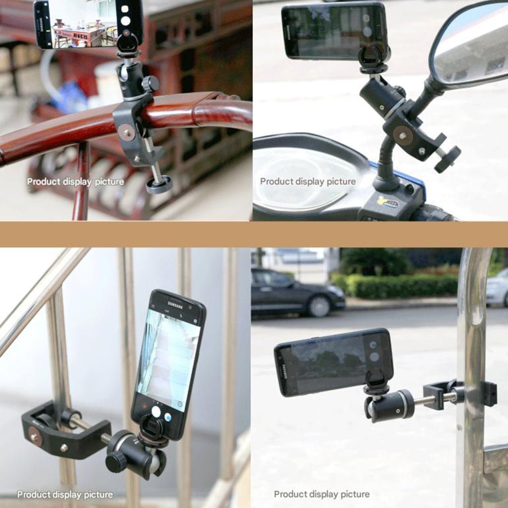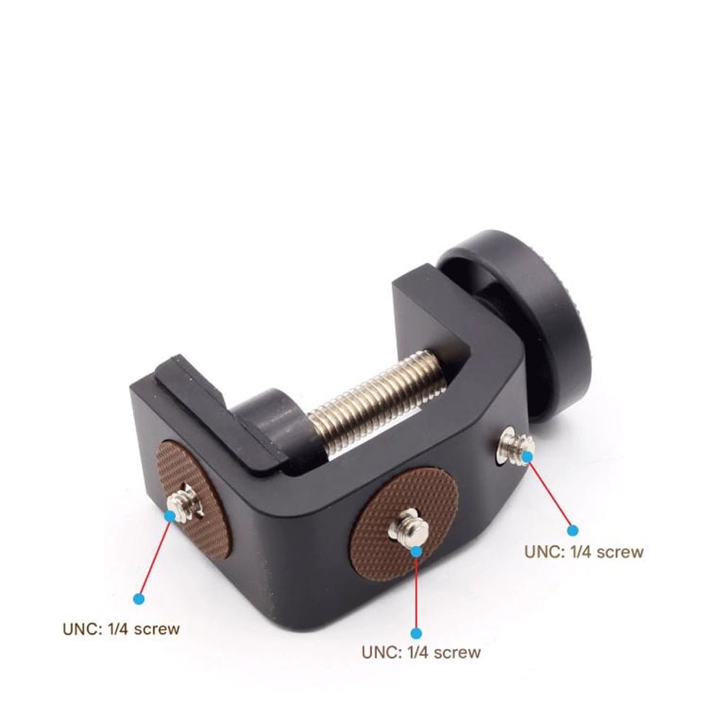 This versatile camera clamp securely grips objects up to 32mm in diameter with its universals 1/4inch screw hole, ensuring easy attachment to devices and anti slip rubber pad for enhanced stability and scratch protections during use.