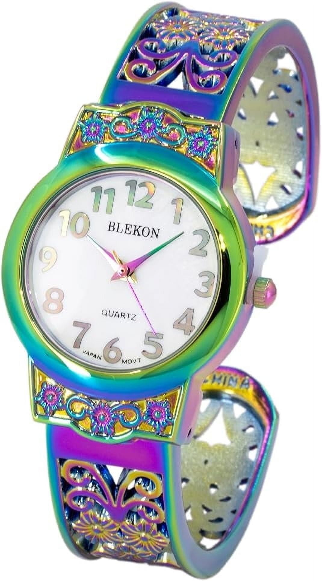 Blekon Collections Japanese Quartz Women’s 28mm Case Elegantly Designed Cuff Bangle Watch (Two-Tone) (Two-Tone)