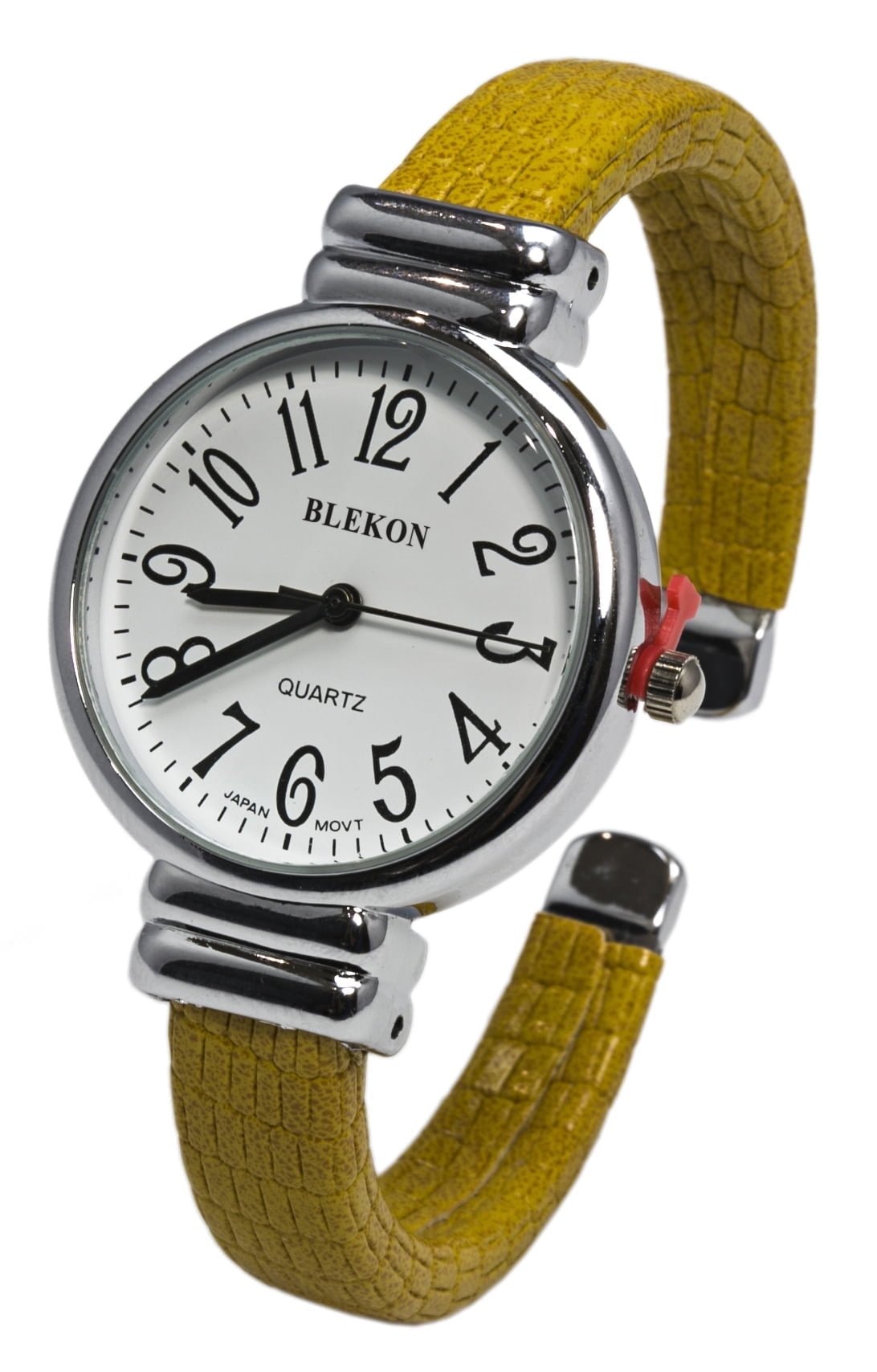 Blekon Collections Women’s Cuff Bangle Watch, featuring a sleek 31mm case and a distinctive snake-patterned leather band. Powered by reliable Japanese Quartz movement, this fashion-forward timepiece combines elegance and comfort in one design. The soft leather cuff offers a secure yet stylish fit, while the unique bangle style adds a bold touch to any outfit—perfect for daily wear or special occasions. Crafted with high-quality materials and exquisite detailing, this watch is ideal for women who appreciate both fashion and function. Make a statement with timeless sophistication.