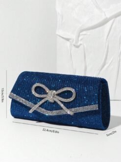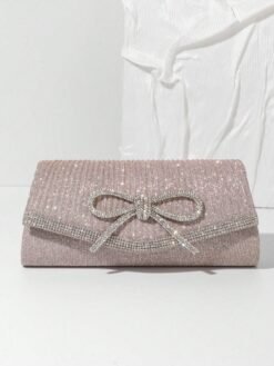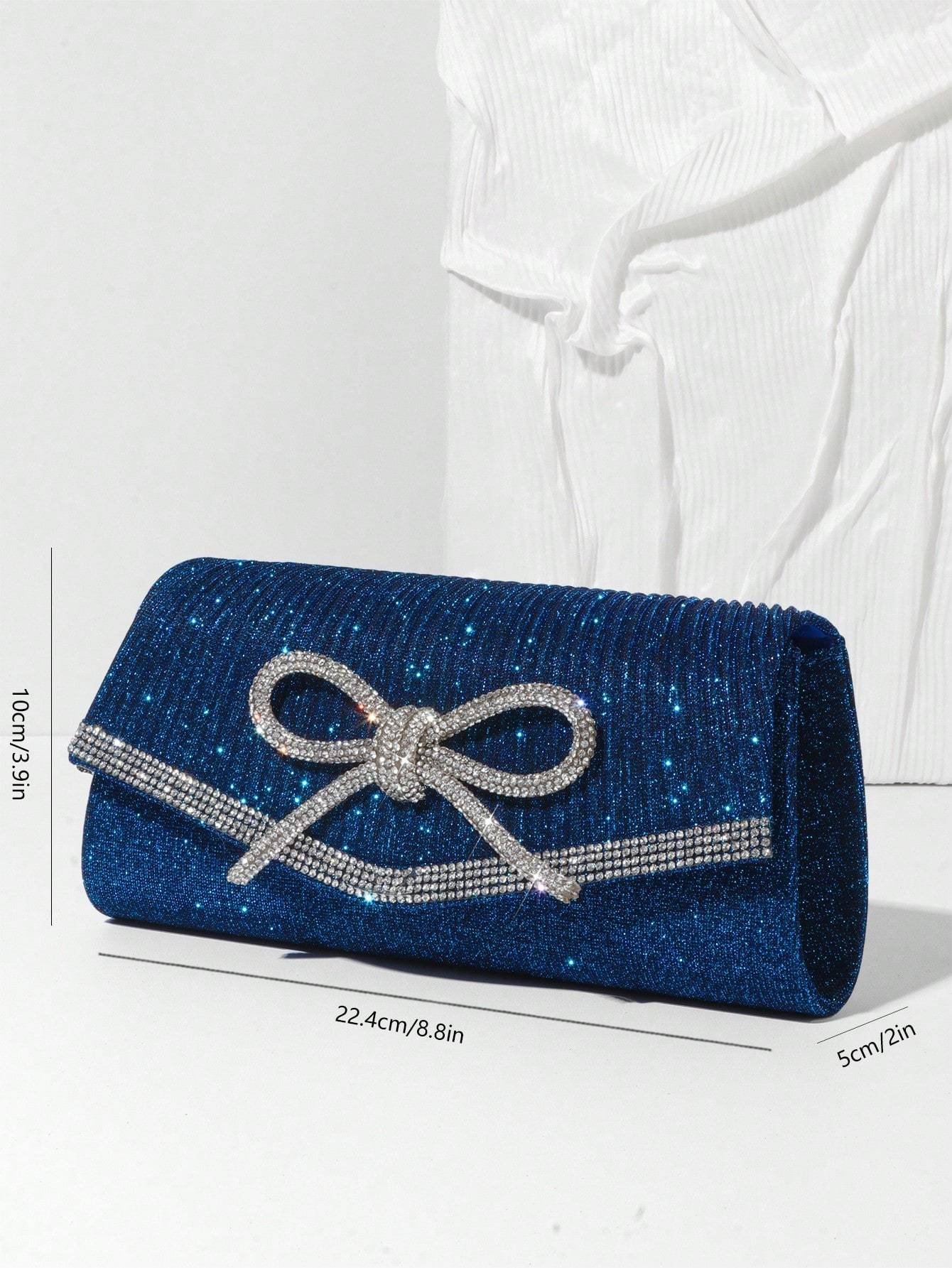 Bow Clutch: this envelope evening bag features a textured, shimmery material, and is finished with a sparkly diamante bow and rhinestone at the front, which emit a splendid radiance under light, creating a stunning and elegant decorative effect