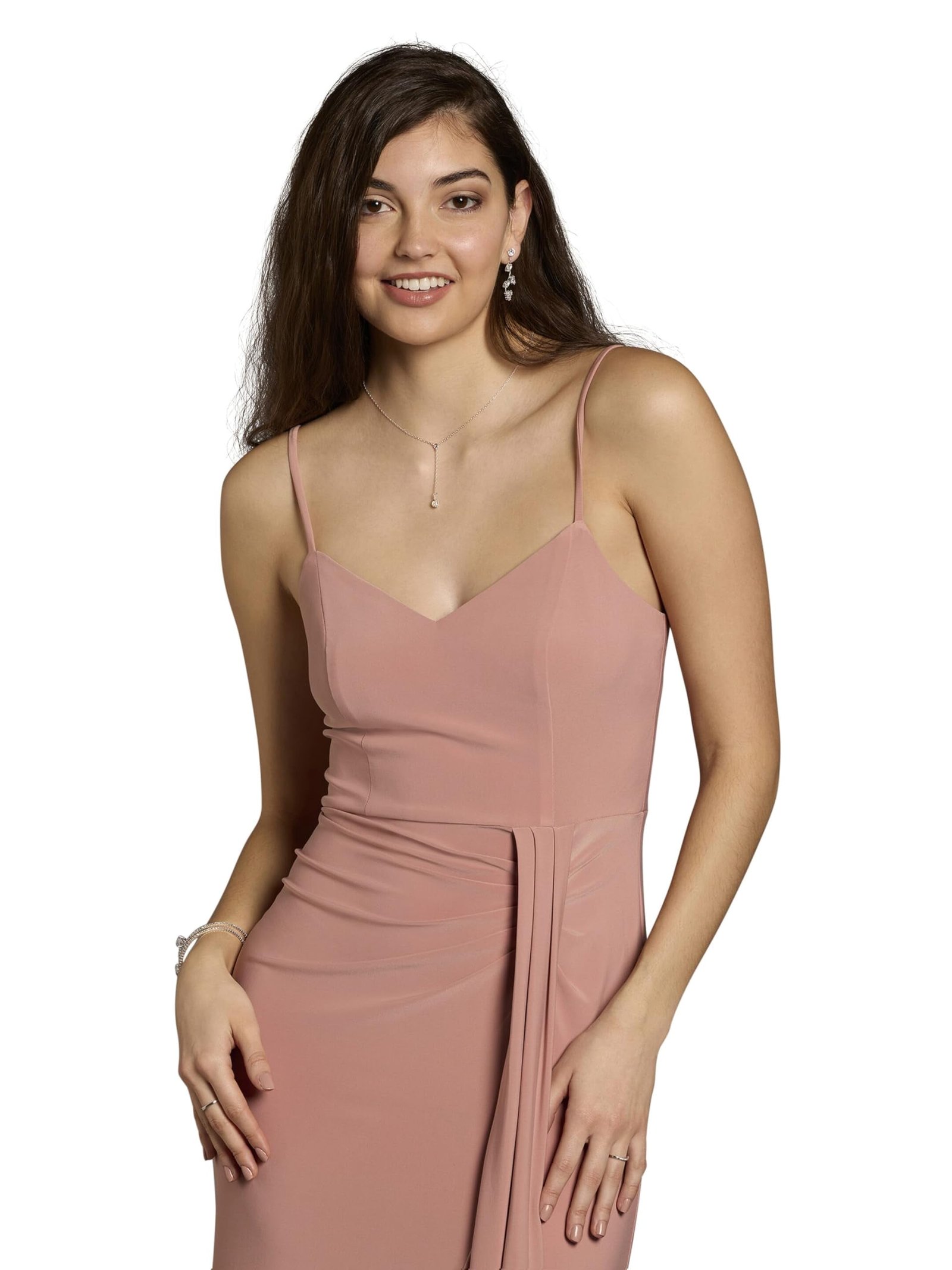 David’s Bridal Women’s Formal V-Neck Ruched Sheath Dress. A versatile choice for bridesmaid duty or your next event, this jersey sheath dress combines elegance and comfort with a flattering V-neckline and flattering details.