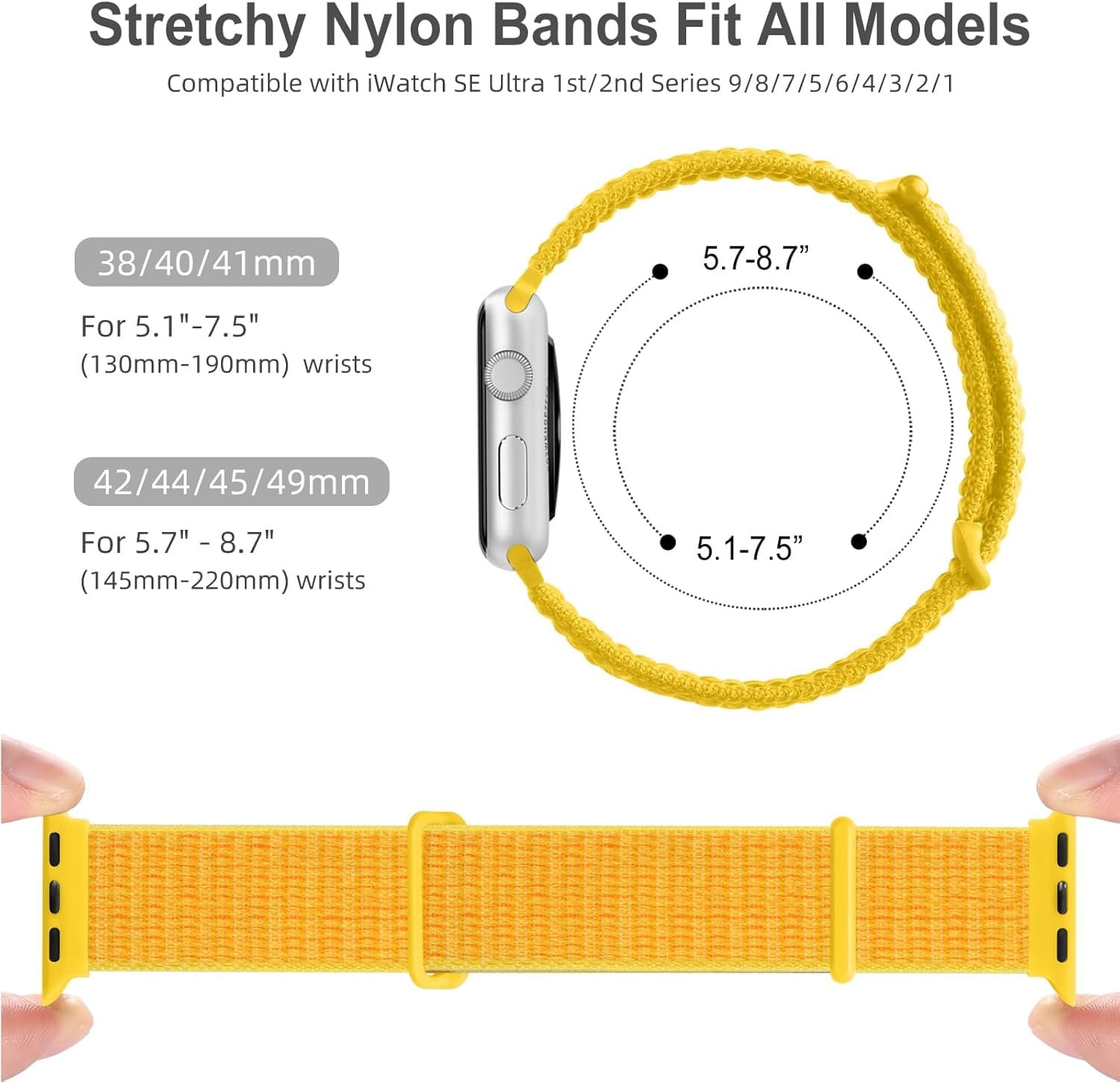 【Compatible with Apple Watch】Getino adjustable elastic woven wristbands fit for Apple watch band 40mm 41mm 38mm 42mm 46mm 44mm 45mm 49mm, a perfect accessories for iWatch Series 10, Series 9, Series 8, Series 7, Series 6, Series 5, Series 4, Series 3, Series 2, Series 1 and Apple watch Ultra SE 1st, 2nd Generation. 38mm/40mm/41mm/42mm(Series 10) size for 5.1″-7.5″ (130mm-190mm) wrists, 49mm/46mm/45mm/44mm/42mm(Series 1/2/3) size for 5.7″ – 8.7″ (145mm-220mm) wrists