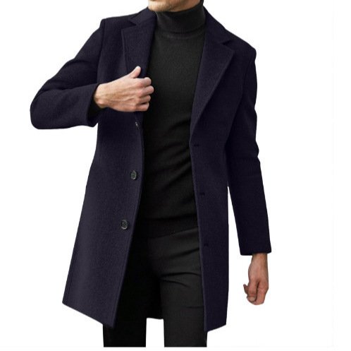 Mens Mid-length Long-sleeve Wool Coat Autumnwinter Wool Outerwear