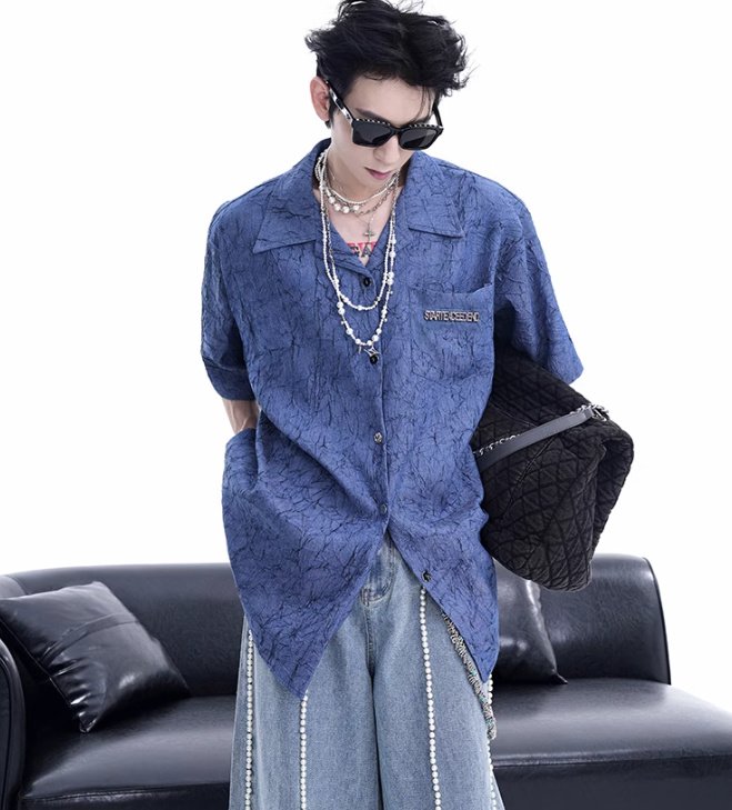 Niche Design Pleated Textured Short Shirt Men’s Tops
