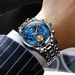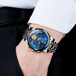 OLEVS Mens Watches Chronograph Business Dress Quartz Stainless Steel Waterproof Luminous Date Wrist Watch For Men Blue Dial