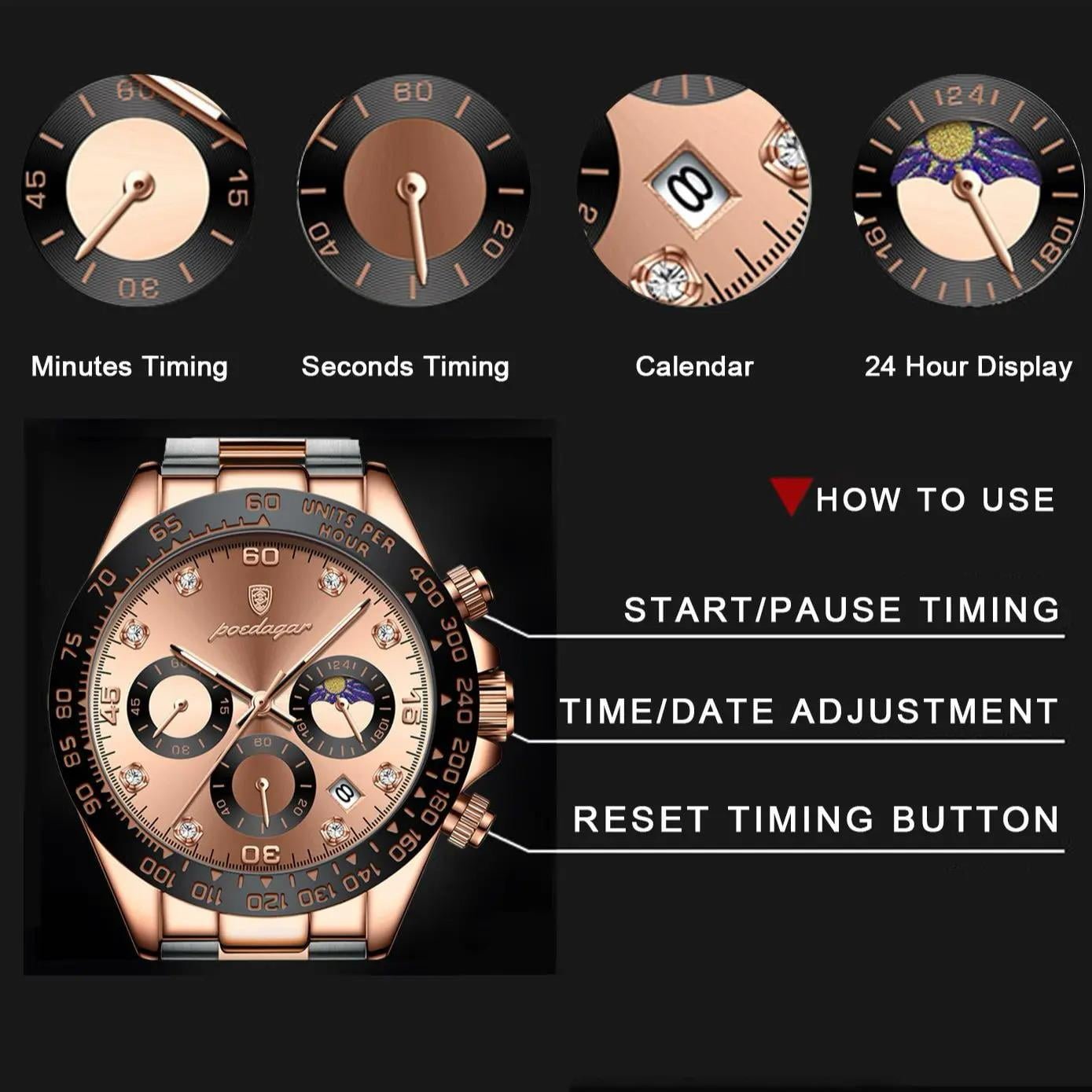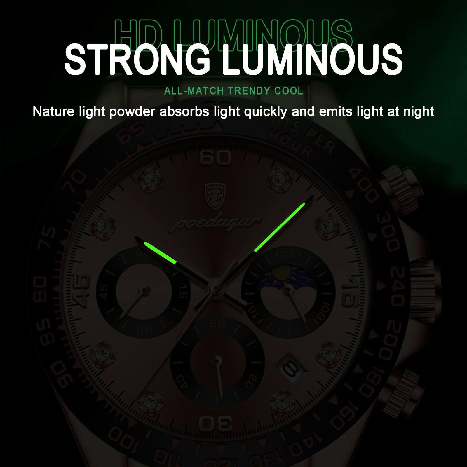 POEDAGAR Luxury Watch For Men Chronograph Waterproof Luminous Date Man Wristwatch Stainless Steel Men’s Watches Quartz Clock box