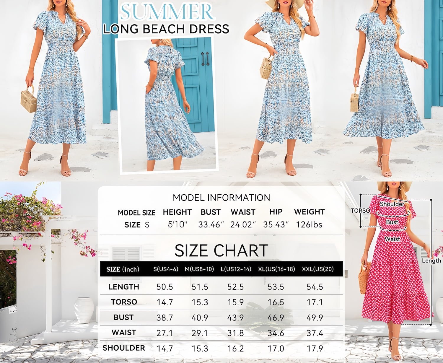 β¨β¨π§ππ£π¦: S=US 4-6, M=US 8-10, L=US 12-14, XL=US 16-18, XXL=US 20. Maxi Dresses for Women Crafted from Soft and Comfy Printed Material, Brightly Pattern Brings Elegance and Style to Your Wardrobe. Floral Dress for Women Is Excellent Choice for Hot Weather