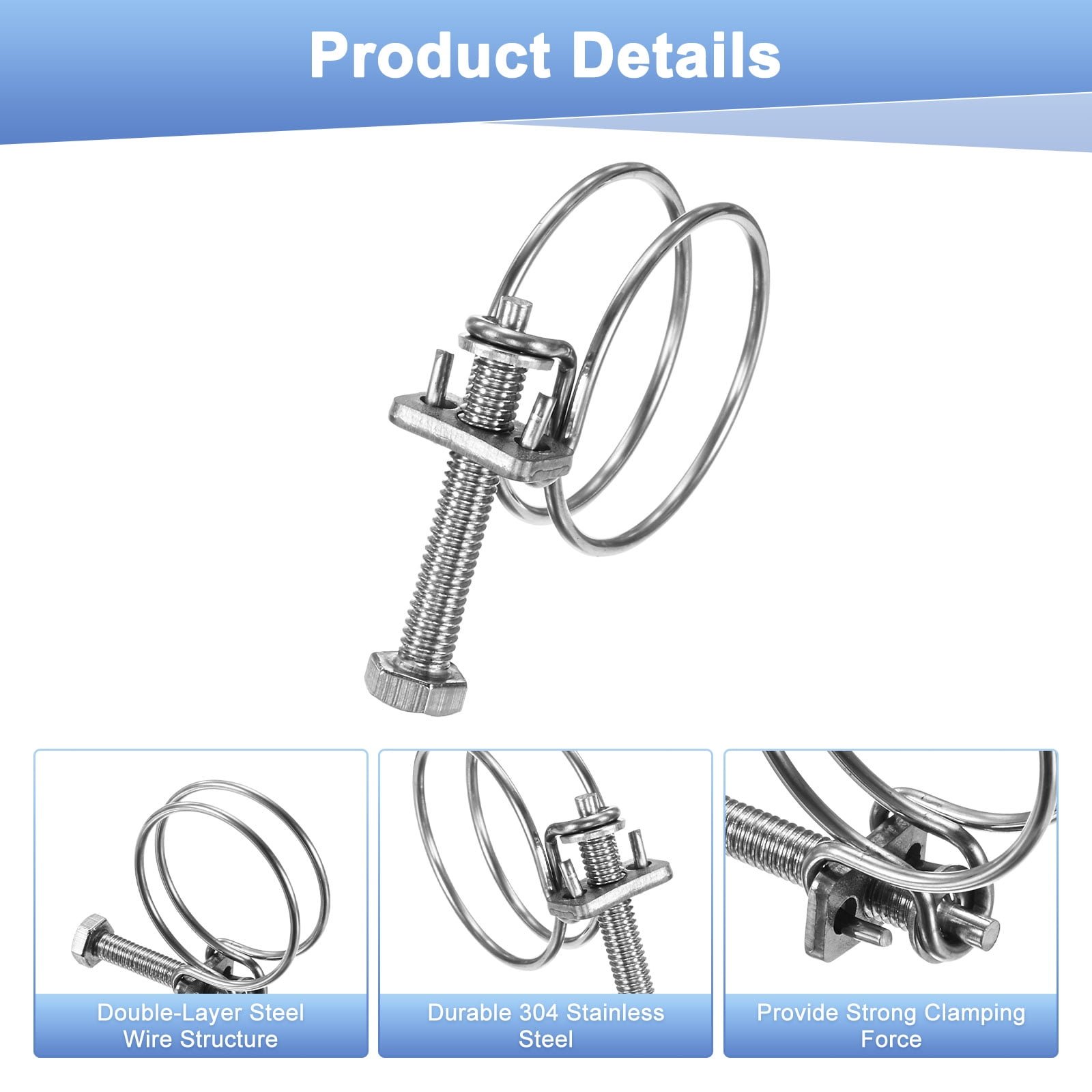 - Functional Design: This double-layer steel wire hose clamp adopts a double-steel wire structure, providing a more uniform and powerful clamping force than a single-turn hose clamp